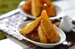 1、ジャガイモは皮ごときれいに水洗いし、水気を拭き取る。1個を8つのくし切りにする。