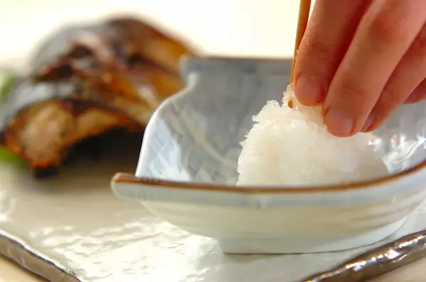 2、大根おろしはザルに上げて軽く汁気をきり、作り置き甘酢をからめる。