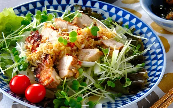 鶏もも肉をグリルで焼くことで、香ばしい皮とジューシーな肉を堪能できます。揚げずに作るため、ヘルシー志向の方にもイチオシです。タレにたっぷりのショウガを効かせることで、さっぱりとした風味に。柑橘系の搾り汁を加えるのもアリ。