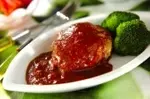 5、器に(3)のハンバーグを盛り、(4)の<ソース>をかけてブロッコリーを添える。