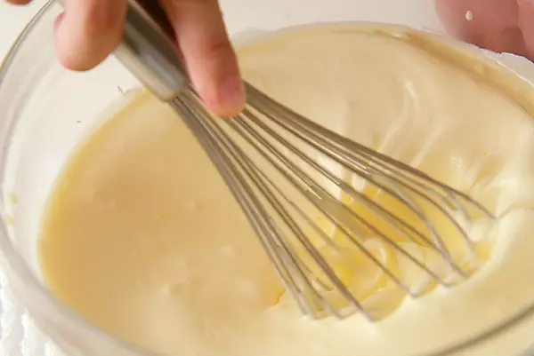 5、さらに、泡立てておいた3の生クリームを加え、混ぜあわせる。