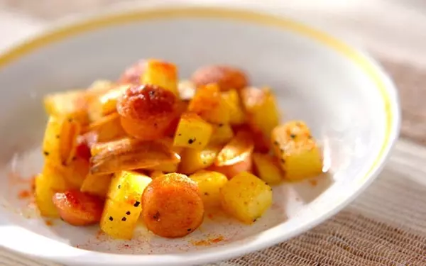 ジャガイモのホクホク食感に、ジューシーなウインナーの旨みがからみます。コリアンダーパウダーの爽やかな香りに誘われて食欲もアップ。鮮やかな見た目で、お弁当のおかずにもぴったりです。