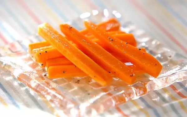 ニンジンを切って、調味料が入った袋に入れるだけ! すべての料理を作り終わった時点で食べ頃になる、お手軽なレシピです。酢が効いていて、さっぱりとしているのがポイント。こってり系料理の箸休めにぴったりです。お弁当の彩りおかずにもどうぞ。
