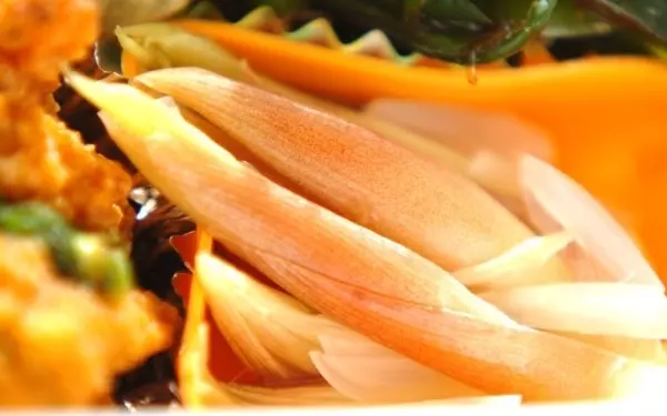 ミョウガは油とも好相性! ひと口噛みしめるとシャキッとジューシーで、ほんのりと甘みが感じられます。生で食べるよりもくせがなく、ミョウガが苦手な方でも食べやすいです。天つゆや塩をつけて、どうぞ。