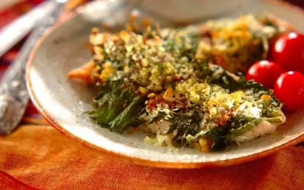 重ねてオーブンで焼くだけでズボラさん必見! チーズ入りのパン粉で香ばしく、梅肉の酸味と大葉の風味が食欲をかき立てます。揚げずにヘルシーだから、罪悪感なしにいただけるのもうれしいですね。