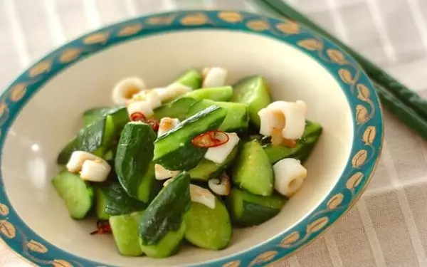 あっさり塩味で、素材の風味を存分に堪能できる一皿。ボリューミーなのにカロリー控えめなのもうれしいポイント。イカは、斜め格子に浅い切り込みを入れると、より味がなじみやすくなります。チャーハンや冷やし中華など中華料理の付け合わせにどうぞ。