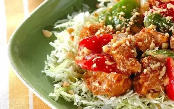 揚げた豚肉にオーロラソースをからめる、ボリューミーな主菜です。ソースのさっぱり感が豚肉のジューシーさを引き立て、最後まで飽きずに味わえます。ブロックの豚肉は火が通るまで時間がかかるので、中温で中までしっかり揚げましょう。子どもがいるご家庭では、薄切り肉を揚げ焼きにすると食べやすいですよ。