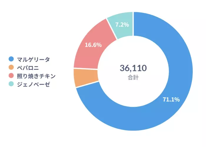 トマトとモッツァレラチーズ、バジルが相性抜群のマルゲリータが圧倒的1位という結果になりました。シンプルだからこそ生地やチーズ、トマトソースの味が際立ち、多くの人の心をつかんでいるようです!