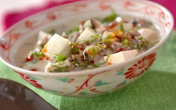 豆乳と豆腐のやさしい味わいに、ラー油の辛さがアクセントになります。簡単なのに本格的で、たった15分で完成するのもうれしい点です。辛いものが好きな方は、豚ひき肉を炒める際に豆板醤を加えたり、仕上げのラー油を多めに振ったりすると◎。