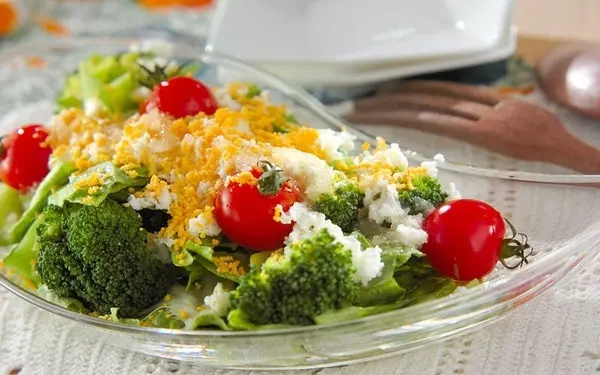 野菜を存分に食べたい日はミモザサラダがイチオシです。ブロッコリーやトマトなどを組み合わせることで、レタスの食感がより引き立ちます。ドレッシングは、すりおろし玉ネギの甘みと酢のバランスが絶妙。見た目がきれいで、ホームパーティーにも喜ばれます。