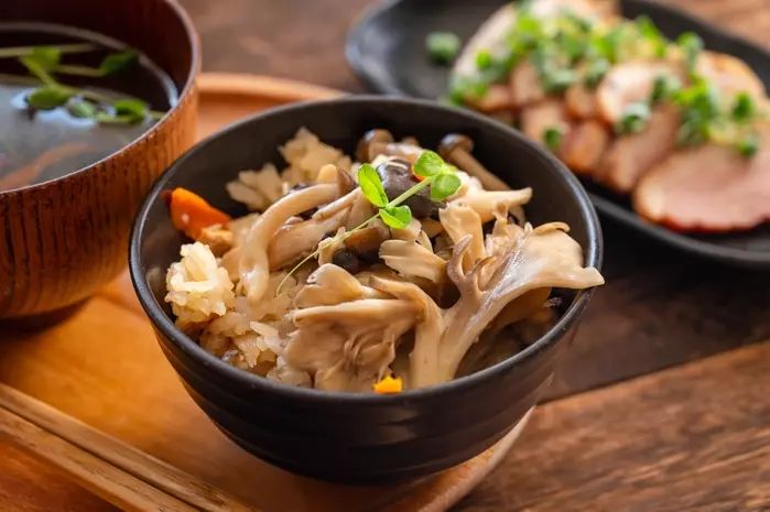 きのこは煮汁と分けておくと、米の水加減がしやすくなりますね。