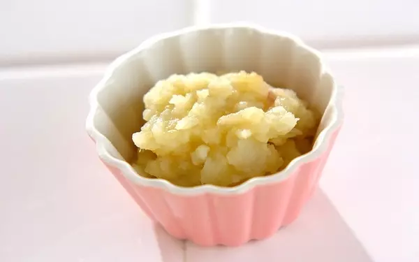 すりおろしリンゴとサツマイモペーストのスイートポテトは、砂糖なしでも、赤ちゃんが口にしやすい甘さです。なめらかなペーストは離乳食初期に、舌触りが残る粗さは中期におすすめです。リンゴスイートポテト