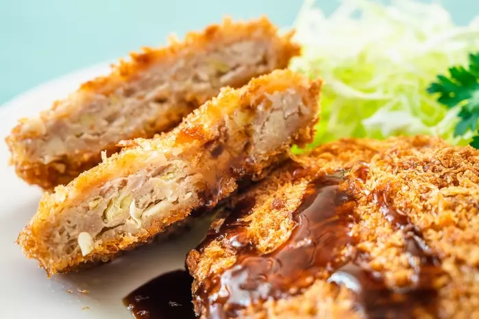 豚肉は揚げた時にキュッと縮んでそりかえりがちですよね。しかし、脂身と赤身の境を包丁の先でたたき繊維を切れば、縮みません。トンカツはそのまま食べたり、カツ丼にしたり、パンに挟んだり、食べ方が多彩です。