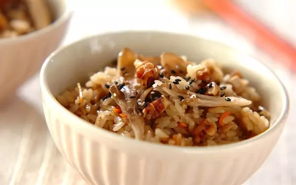 クルミの香ばしさと、甘辛い味付けが絶妙なバランス。ニンジンやマイタケ、油揚げといったシンプルな具材で作るので、どんな主菜とも相性抜群です。サンマの塩焼きや松茸の土瓶蒸しなど、旬の味覚を添えて秋の食卓を豊かに彩ってみてはいかがでしょうか。