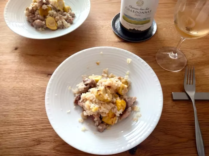 濃厚で豊かな味わい「栗と鶏のチーズリゾット」樽熟成をした日本ワインと【ワインと料理 ペアリングの愉しみ】