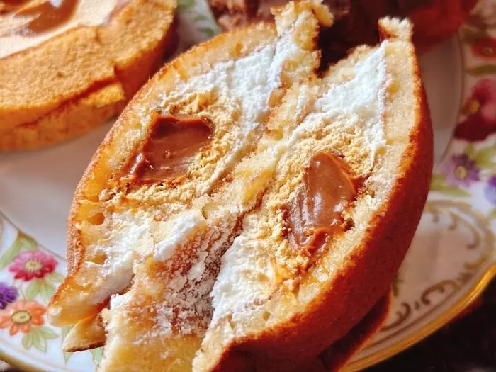 一口目からキャラメルソースのビターな味わいがガツンときます!北海道産生クリームはやさしい甘みで、ミルキー感も濃厚。キャラメルソースと一緒に食べるとビターな味わいを強く感じました。もちもちの生地は、今回も食べ応えがあります。