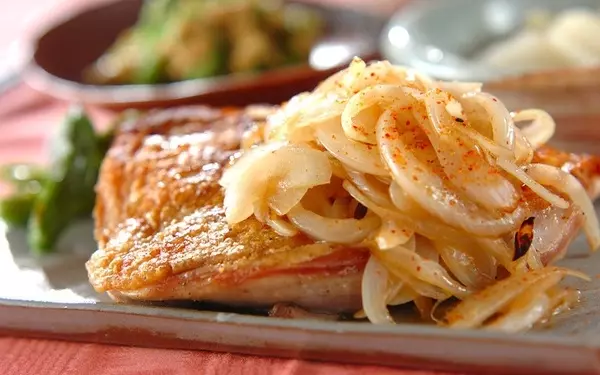 塩コショウでシンプルにソテーした鶏肉に、甘酢をからめた玉ネギが絶妙です。さっぱり食べたいときにイチオシ。玉ネギはサッと炒めてシャキシャキ感を活かしても、しっかり炒めてクタクタにしてもどちらも絶品です。モヤシやニラなどの野菜を加えると、手軽にボリュームアップできますよ。