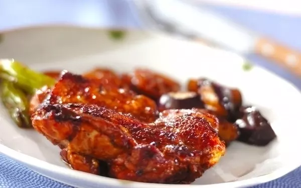カリカリの皮目が香ばしいチキンステーキを、七味唐辛子でピリッと大人向けに仕上げます。下味に麺つゆとニンニクを使うため、味に奥深いコクが出ますよ。下味がついたまま焼くと焦げやすいので、汁気を切ってから焼くのが成功のポイント。旨みたっぷりの肉汁が溶け込んだタレは、焼いた野菜にからめて余さず堪能しましょう。