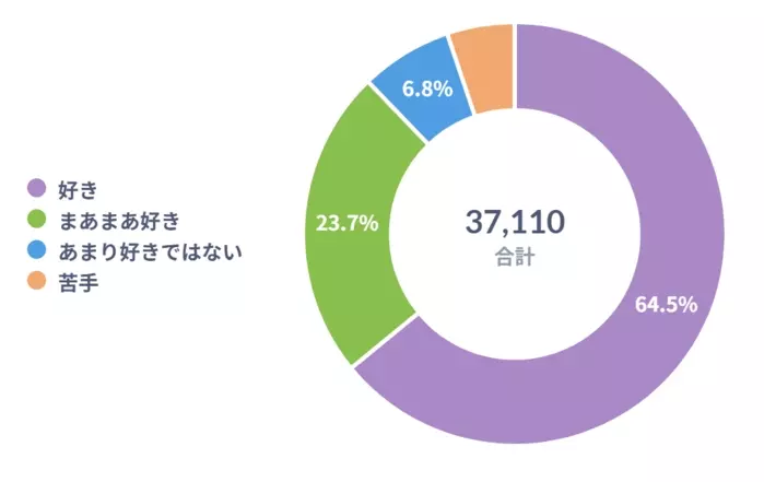 「好き」が圧倒的1位を獲得!香りや食感のバリエーションが豊富で、どんな料理にも合うのが人気の理由でしょうか。「まあまあ好き」派と合わせると、9割近くの方がキノコが好き!ということがわかりました。また苦手や、あまり好きではない方も少数ながらもいらっしゃいました。