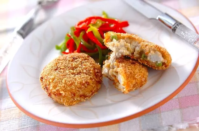 外はサクッ、中はもっちり。ジャガイモとはひと味違う食感が楽しめる里芋のコロッケです。鶏ひき肉と合わせてシンプルに作るのも良し、ニンジンやサヤインゲンを加えて彩り良く仕上げるのもおすすめ。揚げたての香ばしさは格別です。