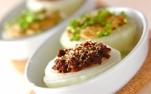 肉みそと魚みそ、2種類の味で楽しむ玉ネギの酒蒸し。合わせみその調理、玉ネギの加熱ともに電子レンジだけで完結するため、洗い物が少ないのもうれしいですね。仕上げにバーナーで表面を軽く炙ると、香ばしさがプラスできますよ。