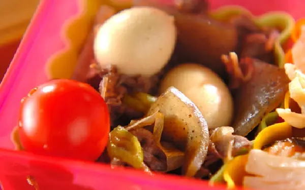 10分で完成する簡単すき煮です。具材を甘辛く炒めた後に、だし汁を加えて煮込みます。具材を先に炒めることで、コクと香ばしさが際立ち、滋味深い味わいに。お弁当のおかずにする場合は、汁気をよく切ってからお弁当箱につめましょう。