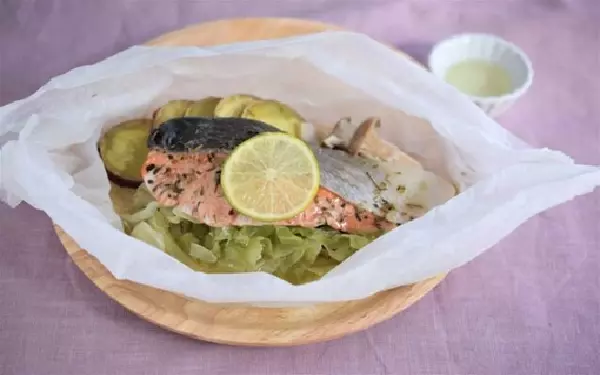 温度設定のできるホットプレートの場合は、230℃で予熱し鮭を焼いて野菜を並べ、その上に鮭をのせ180~200℃位に温度を下げて蓋をし、蒸し焼きにして下さい。
