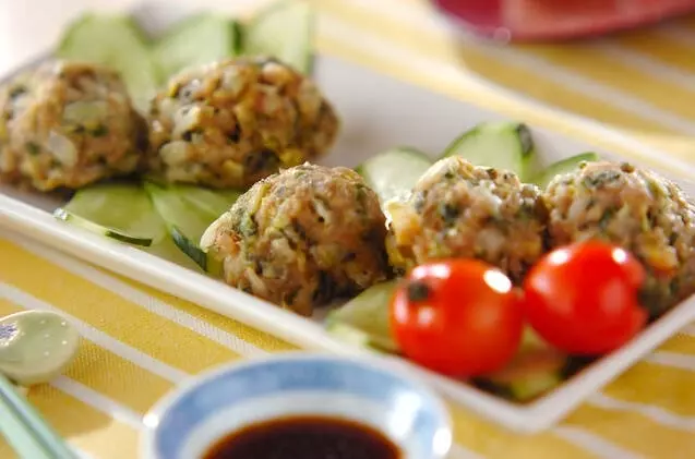 エビのプリッとした食感と、豚ひき肉のジューシーさが一体になった蒸し団子。白菜もたっぷり入れるので、ひとつで食べ応えもバッチリです。レンジ調理とは思えないほどふっくらと仕上がりますよ。