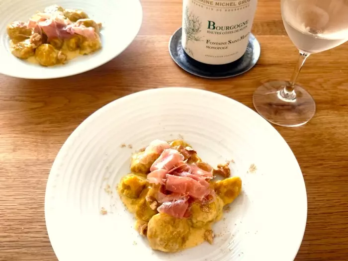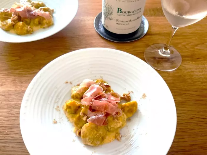 「生ハムとカボチャのクリームニョッキ」控えめに樽を感じるシャルドネと合せて【ワインと料理 ペアリングの愉しみ】