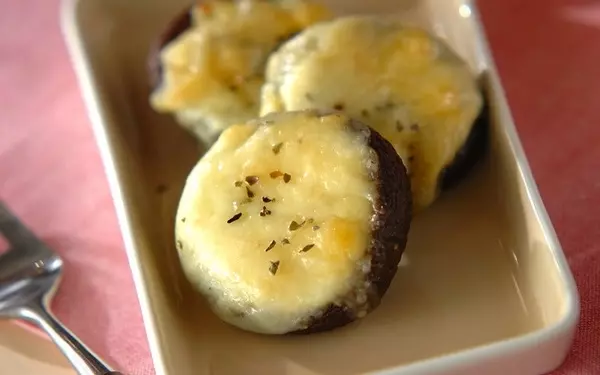あと1品ほしいときに活躍する、シイタケのマヨ焼き。マヨネーズを塗ることで、コクがプラスされるのはもちろん、チーズがはがれにくい効果もあります。表面に焼き色がつき、シイタケがしんなりしたら出来上がり。ジュワッとあふれるシイタケのエキスがたまりません。