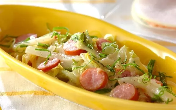 和食や中華のイメージがある白菜ですが、チーズとも相性抜群です。スープの素で味付けし、ピザ用チーズを加えると、食べ応えのある炒め物が出来上がり。ソーセージやチーズなど、子どもが喜ぶ食材を組み合わせているため、家族みんなで楽しめますよ。