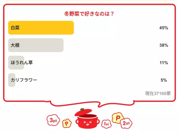 今日の質問は「冬野菜で好きなのは?」さてみなさんの回答は…?