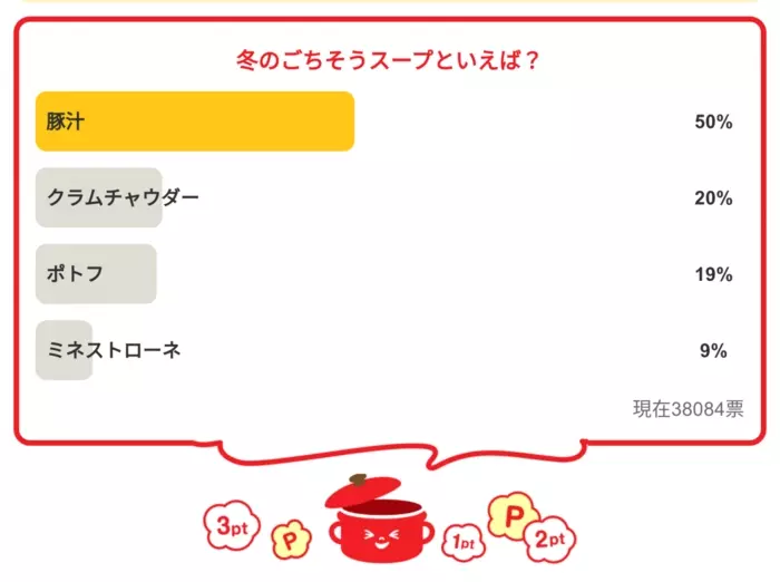 今日の質問は「冬のごちそうスープといえば?」さてみなさんの回答は…?