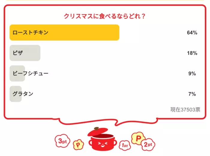 今日の質問は「クリスマスに食べるならどれ?」さてみなさんの回答は…?
