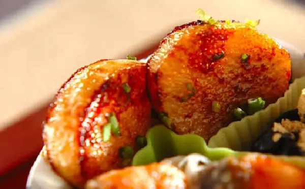 厚切りした長芋をじっくりと焼いて、外はこんがり・中はホクホクに仕上げましょう。バターしょうゆの香ばしさが食欲をそそり、ついつい手が伸びます。調味料を入れた後は焦げやすいので、様子を見ながら火を通してくださいね。