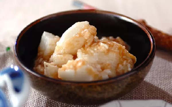 ゴマ油の香ばしさが引き立つ長芋に、コクのある田楽みそが見事にマッチ。添える野菜はシシトウのほか、ネギやオクラでも相性抜群です。電子レンジで手軽に作れる田楽みそは、おでんや焼きおにぎりにも使えるので、覚えておくと日々の献立で重宝します。