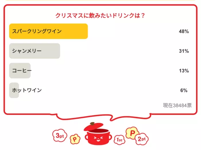 ・「クリスマスに飲みたいドリンクは?」の結果は…