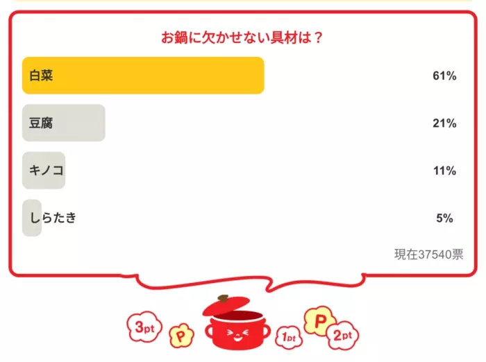 ・「お鍋に欠かせない具材は?」の結果は…