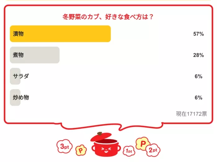 ・「冬野菜のカブ、好きな食べ方は?」の結果は…