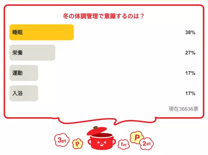 今日の質問は「冬の体調管理で意識するのは?」さてみなさんの回答は…?