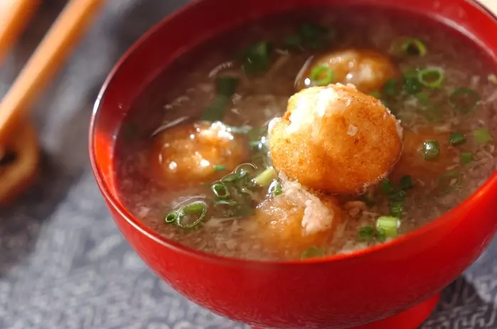 レンコンをすりおろして作る団子がもちもち食感で、具材自体の風味も楽しめる温かいスープです。大根おろしのさっぱりした味わいとショウガのピリッとしたアクセントで、体の芯からぽかぽか温まりますよ。忙しい日の一杯にもぴったりです。([Eレシピ][1])