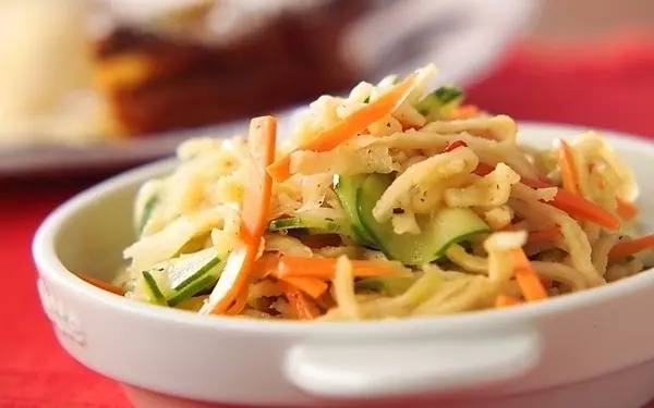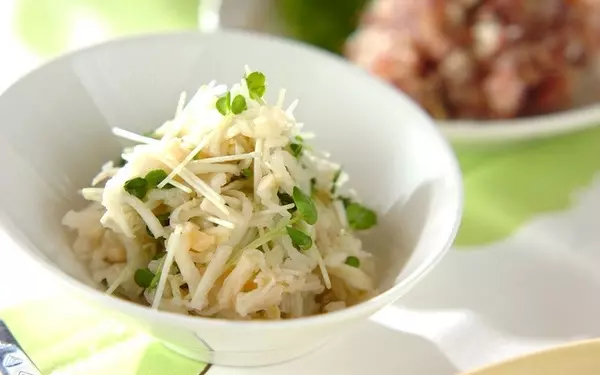 和のイメージを覆す、レモンが効いた洋風アレンジ。火を使わず、戻して和えるだけの手軽さがうれしいポイントです。シャキシャキした歯応えと爽やかなドレッシングは、揚げ物や肉料理のお口直しに最適。サラダにすることで、食物繊維をたっぷり摂取できますよ。