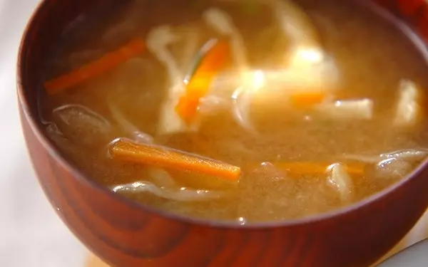 切り干し大根から出るやさしい甘みに、心までホッと癒される一杯。戻し汁をそのままだしとして使えば、栄養も旨みも逃しません。忙しい朝に、エコで栄養満点なみそ汁を楽しみましょう。