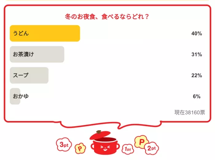 ・「冬のお夜食、食べるならどれ?」の結果は…