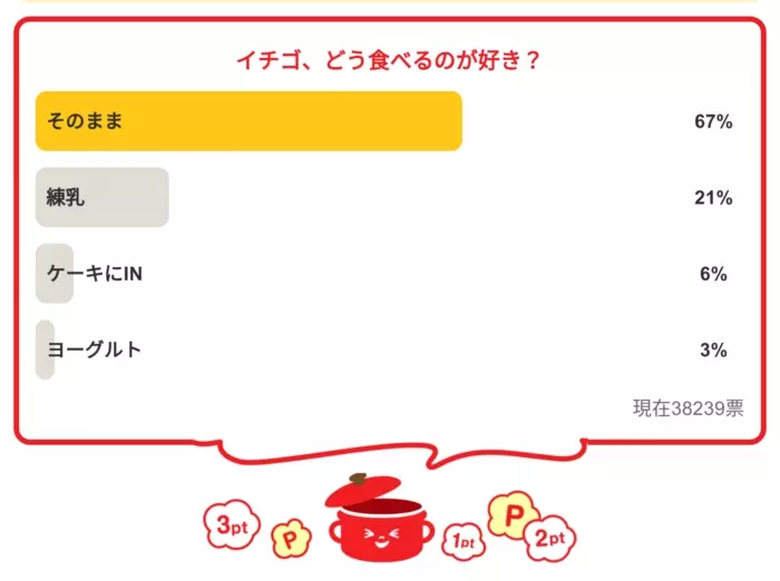 今日の質問は「イチゴ、どう食べるのが好き?」さてみなさんの回答は…?
