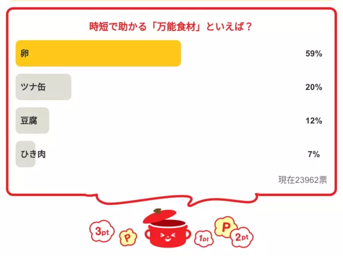 今日の質問は「時短で助かる「万能食材」といえば?」さてみなさんの回答は…?