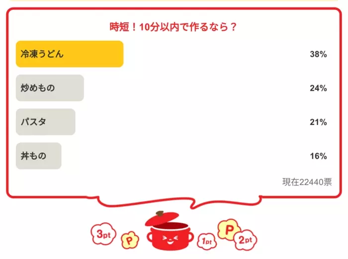 「時短!10分以内で作るなら?」<回答数22,440票>【教えて! みんなの衣食住「みんなの暮らし調査隊」結果発表 第434回】
