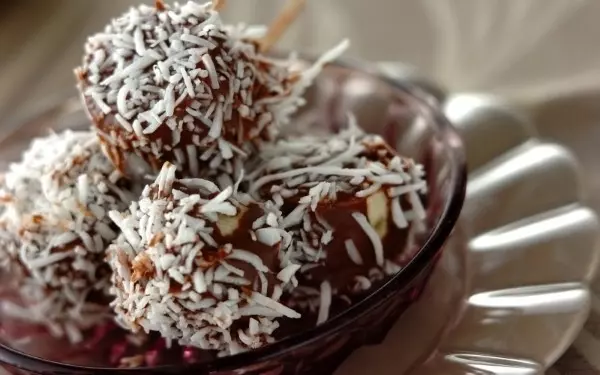 市販の鈴カステラをチョコレート&ココナッツファインでデコレーションします。リッチな味わいで、子どもから大人まで大満足。チョコレートはビターがイチオシです。ギフト用にはスティックに刺してロリポップにしても◎。