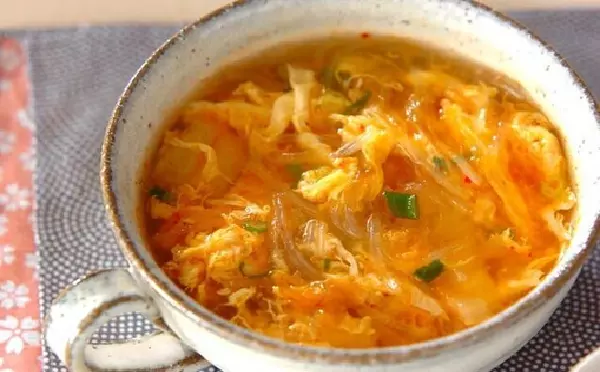 春雨スープに白菜キムチを入れることで噛み応えがプラスされ、お腹をほど良く満たしてくれます。春雨は種類によって戻し方が異なるため、袋の表示を参考にしてくださいね。餃子やチャーハンの付け合わせにもおすすめです。