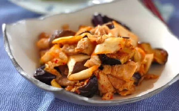 トロッとした揚げ焼きナスが、豚肉とキムチの旨みをたっぷり吸って美味。揚げ焼きナスは、熱湯をかけて油抜きをするのがポイントです。豚肉にはしょうゆで下味をつけるので、キムチだけで味がしっかりと決まりますよ。